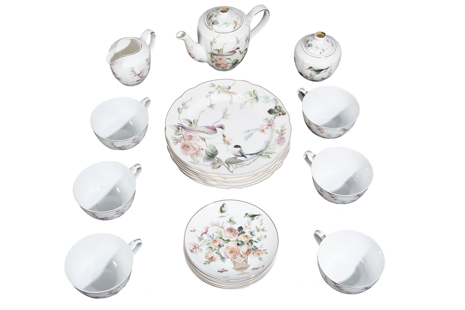 Setin İçeriği: 1 demlik- 1 şekerlik- 1 sütlük-6 fincan-6 fincan tabağı- 6 pasta tabağı