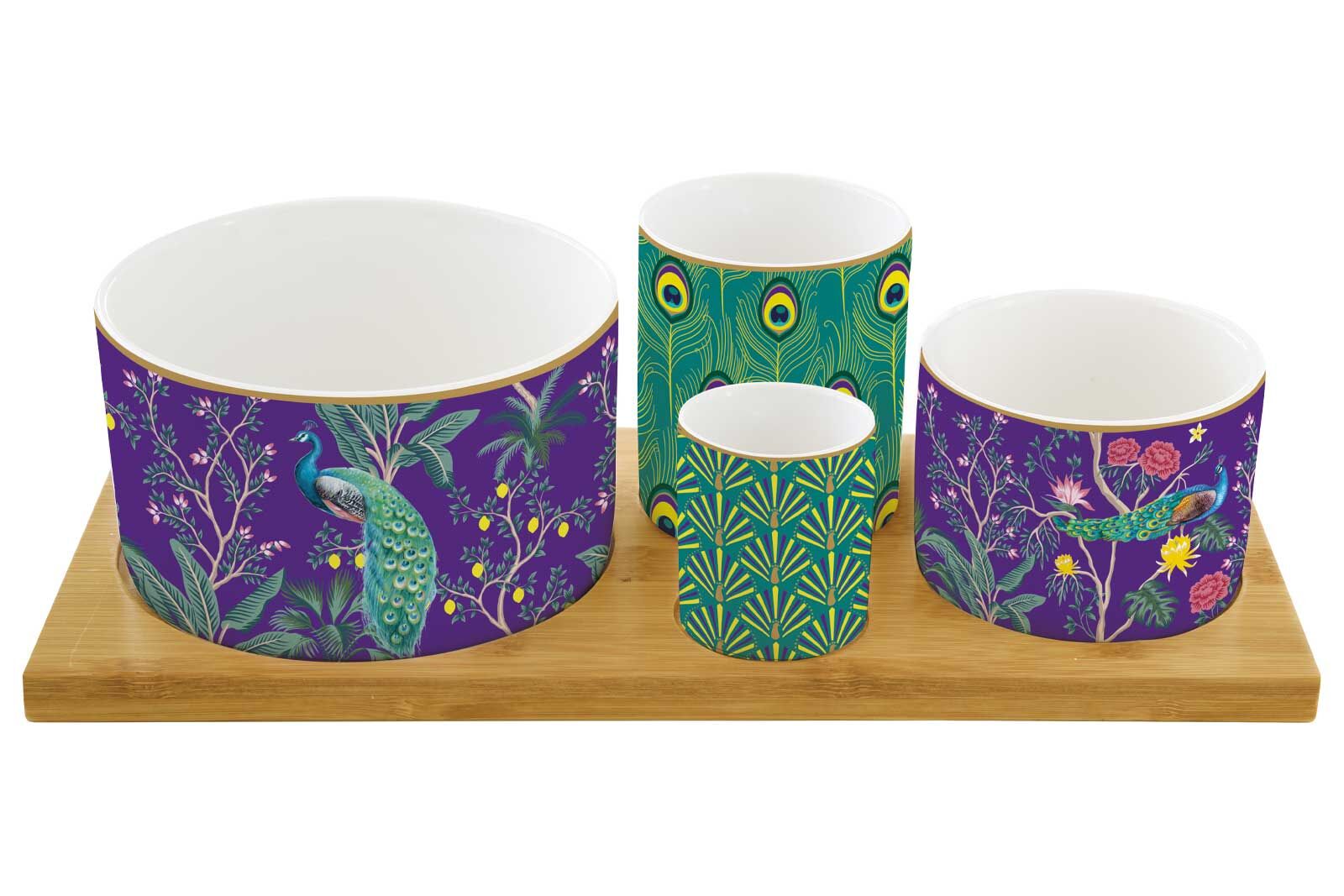 1468 IMPP 4 Parça Porselen Meze Seti Bambu Tepsili 29 x 13 cm
