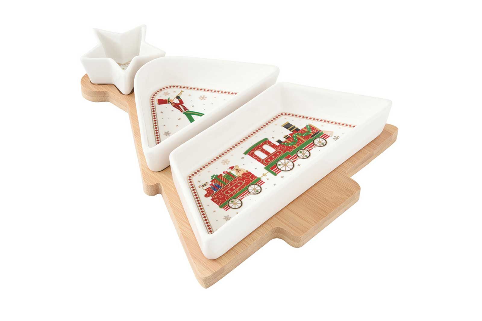 2190 EXPR 3 Parça Porselen Meze Seti Bambu Tepsili 21 x 25 cm