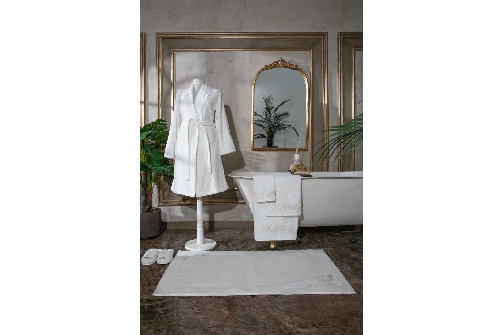 Bornoz& Havlu; %60 pamuk %40 bambu Aksesuar; %100 polyester 30 derece yıkama Çamaşır suyu konamaz Kurutma makinesinde kurutulamaz Düşük ısıda ütülenmelidir ALT GRUP: BANYO TEKSTİLİ