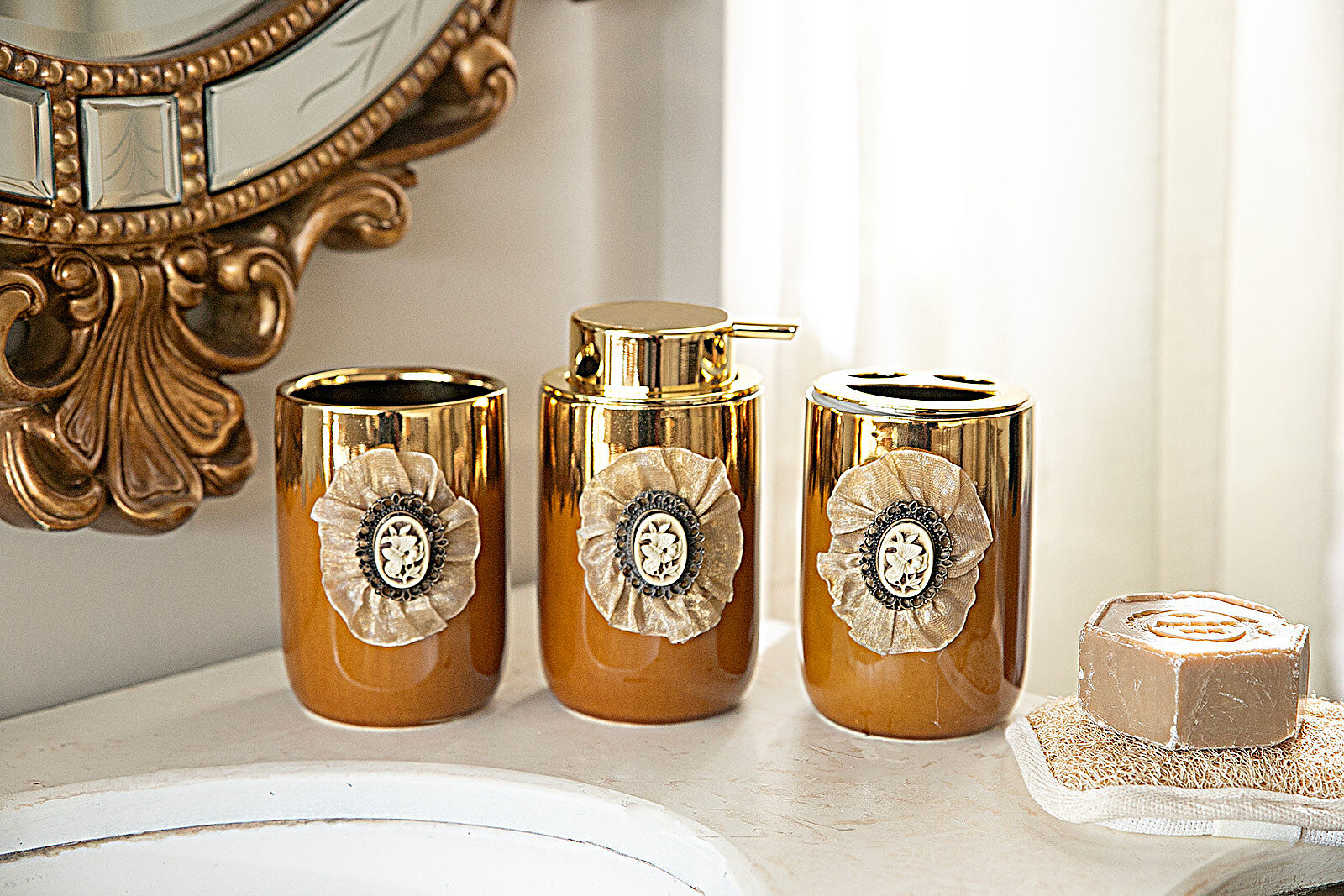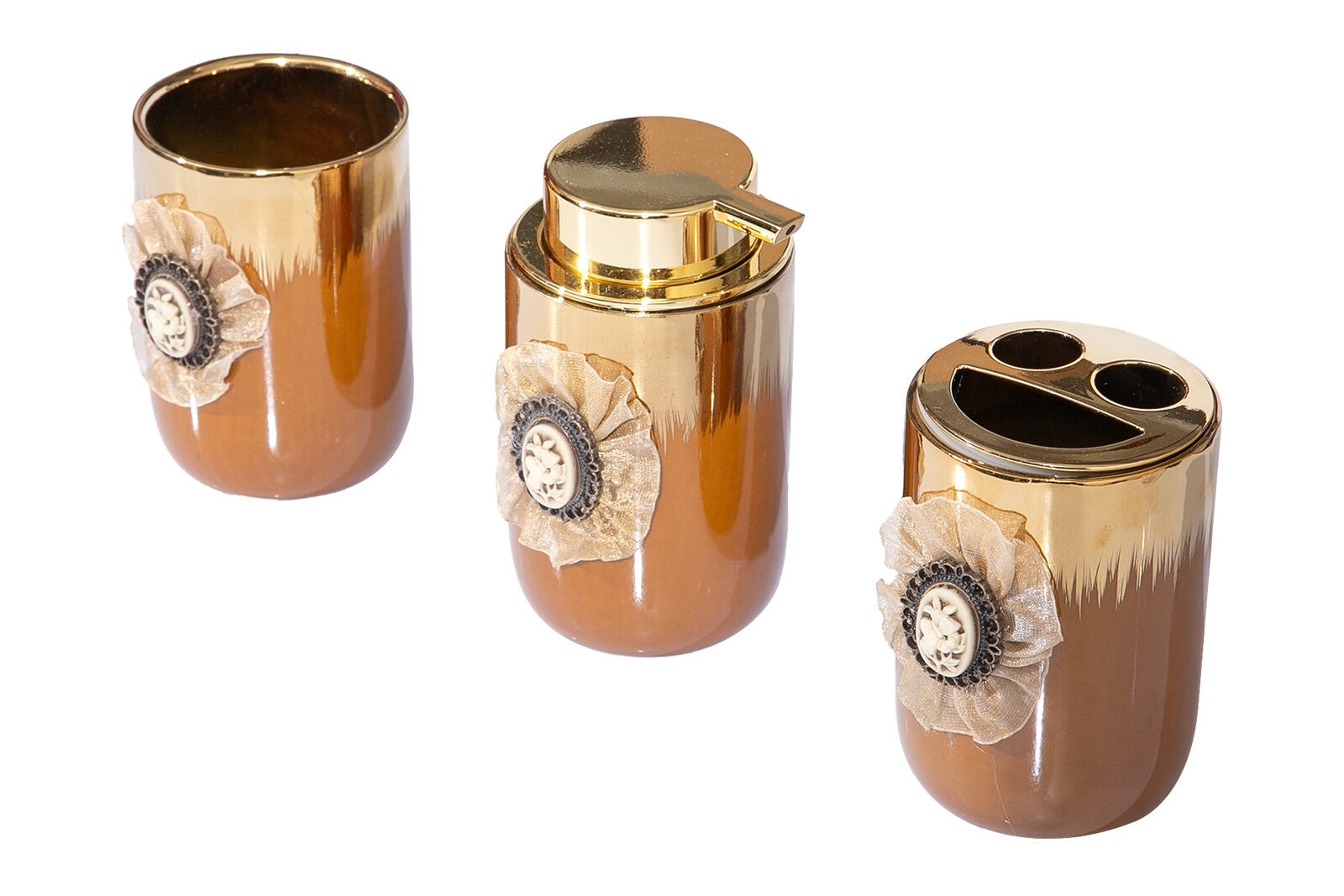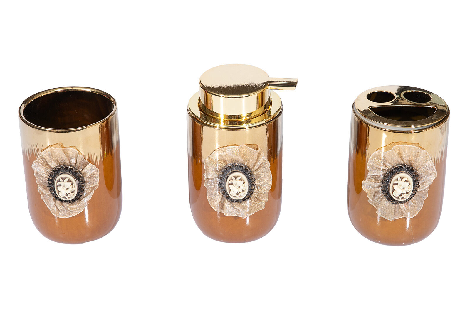 BROŞLU BANYO SET 3'LÜ ZYA21036-2 (SIVI SABUNLUK-DIS FIRCALIK-PAMUKLUK)
