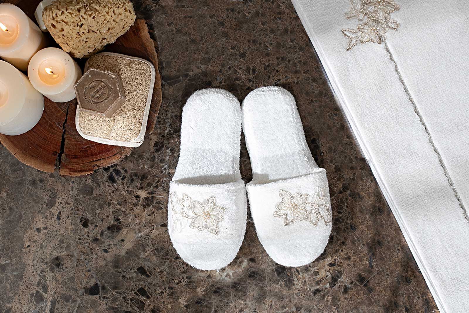 Havlu; %60 pamuk %40 bambu Aksesuar; %100 polyester 30 derece yıkama Çamaşır suyu konamaz Kurutma makinesinde kurutulamaz Düşük ısıda ütülenmelidir ALT GRUP: BANYO TEKSTİLİ