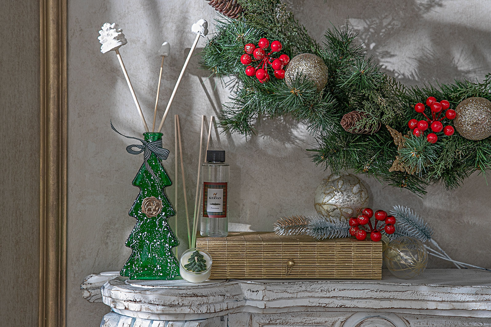 ÇAM AĞAÇLI DEKORATİF KOKU ŞİŞESİ KUTULU SET YEŞİL