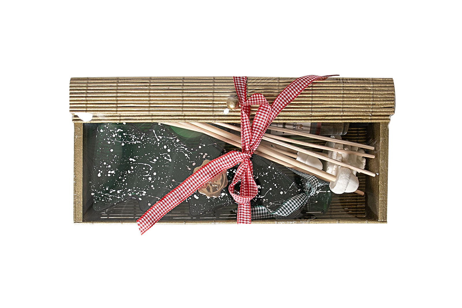 İÇERİK; BAMBU KUTU (11,5X25,5X5,5 CM) + ÇAM AĞAÇLI DEKORATİF KOKU ŞİŞESİ (3,5X8,5X20 CM) + YEDEK ESANS (100 CC) + ÇAM AĞAÇLI MUM (ÇAP: 4 CM, DIŞI PLASTİKTİR) + 5'Lİ NATUREL BAMBU ÇUBUK (24 CM) + DEKORATİF TAŞLI BAMBU ÇUBUKLAR KOKU: PURENESS