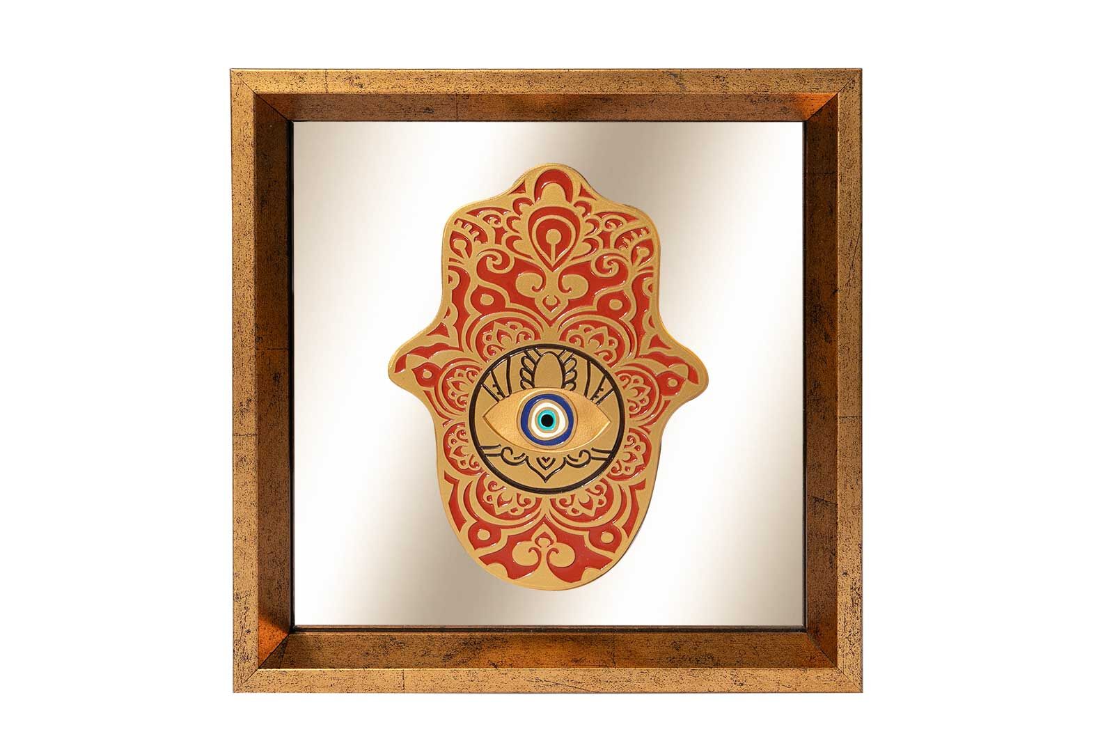 FATMA ANANIN ELİ AYNALI ÇERÇEVELİ DUVAR DEKOR KİREMİT 22X22 CM