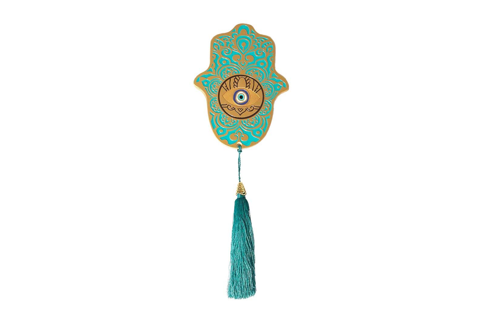 FATMA ANANIN ELİ PÜSKÜLLÜ DUVAR DEKOR TURKUAZ 11X33 CM
