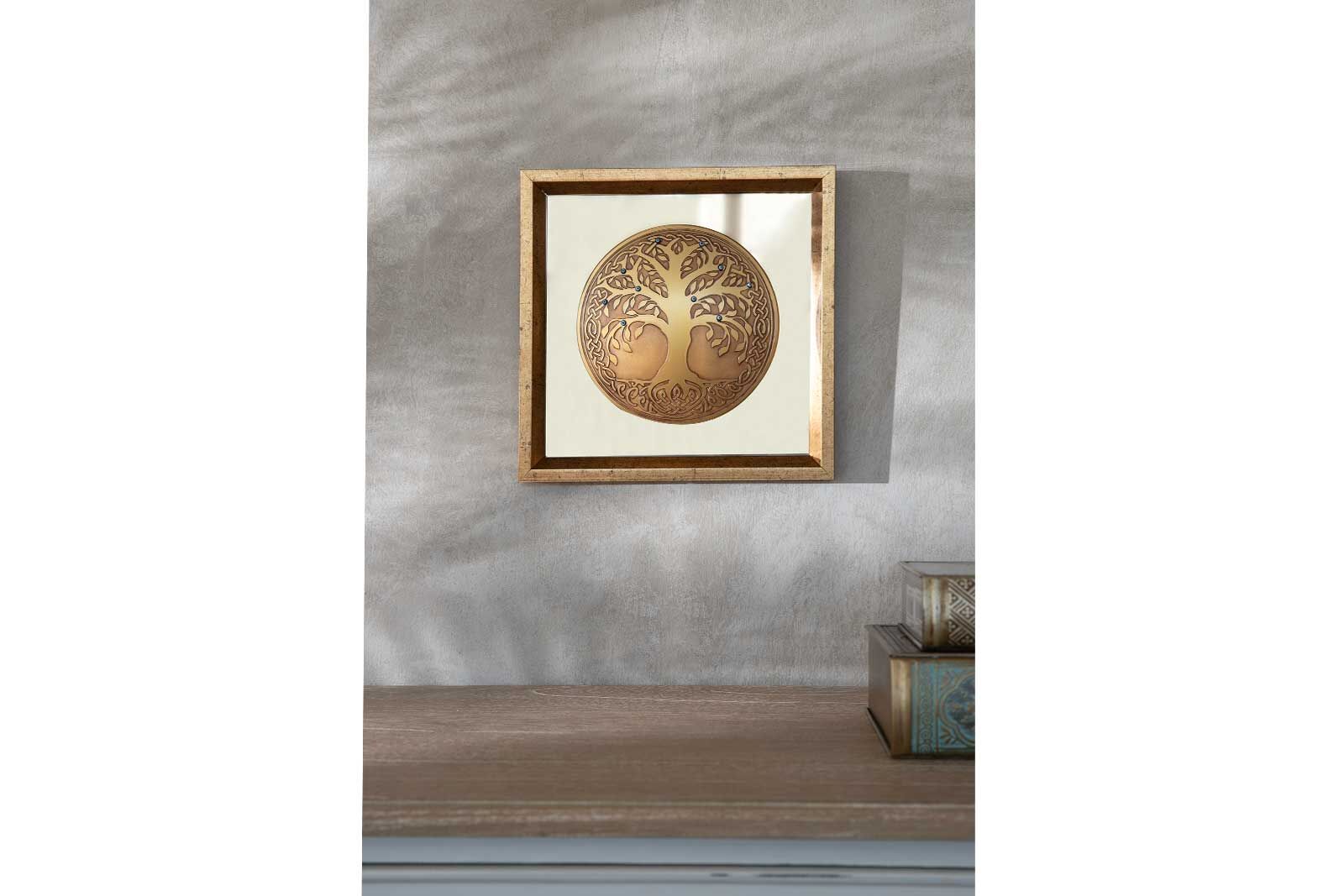 HAYAT AĞACI DUVAR DEKOR (BRONZ AYNALI NAZAR BONCUKLU) 27X27 CM