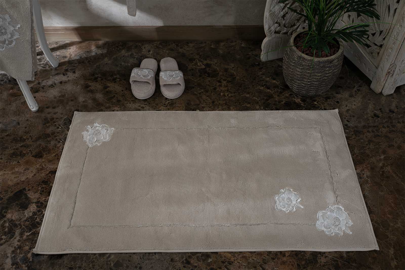 Paspas: %100 pamuk Aksesuar: %100 polyester 30 derece narin yıkama Çamaşır suyu konamaz Kurutma makinesinde kurutulamaz Ütüleme yapılmaz ALT GRUP: BANYO TEKSTİLİ